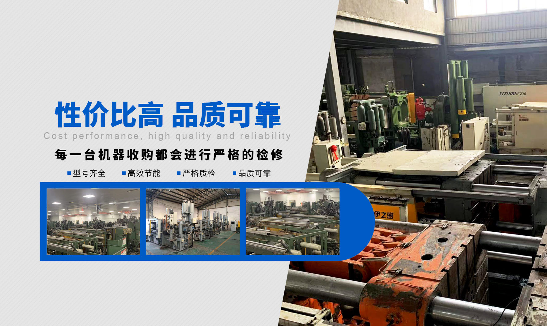 ? ? ? ?臺州久冠機(jī)械科技有限公司位于浙江省臺州市路橋區(qū)峰江鎮(zhèn)峰江路一號 ,專業(yè)從事二手壓鑄機(jī)及周邊設(shè)備業(yè)務(wù),專營國內(nèi)知名品牌,如香港力勁,廣東伊之密,無錫新佳盛,常州力卓等優(yōu)質(zhì)二手壓鑄機(jī),為國內(nèi)外鑄造產(chǎn)業(yè)鏈用戶提供優(yōu)質(zhì)可靠的二手壓鑄機(jī)。公司發(fā)展與壯大二十年來,我們一直秉承團(tuán)結(jié)協(xié)作,互惠互利,誠實(shí)守信,質(zhì)優(yōu)價(jià)廉的原則和理念持續(xù)為客戶提供優(yōu)質(zhì)貨源,自公司成立以來,有在線專家服務(wù),并參加國內(nèi)外壓鑄機(jī)展會,現(xiàn)二手壓鑄機(jī)國際店鋪已搭建成型,歡迎國內(nèi)各位新老朋友前來咨詢選購!